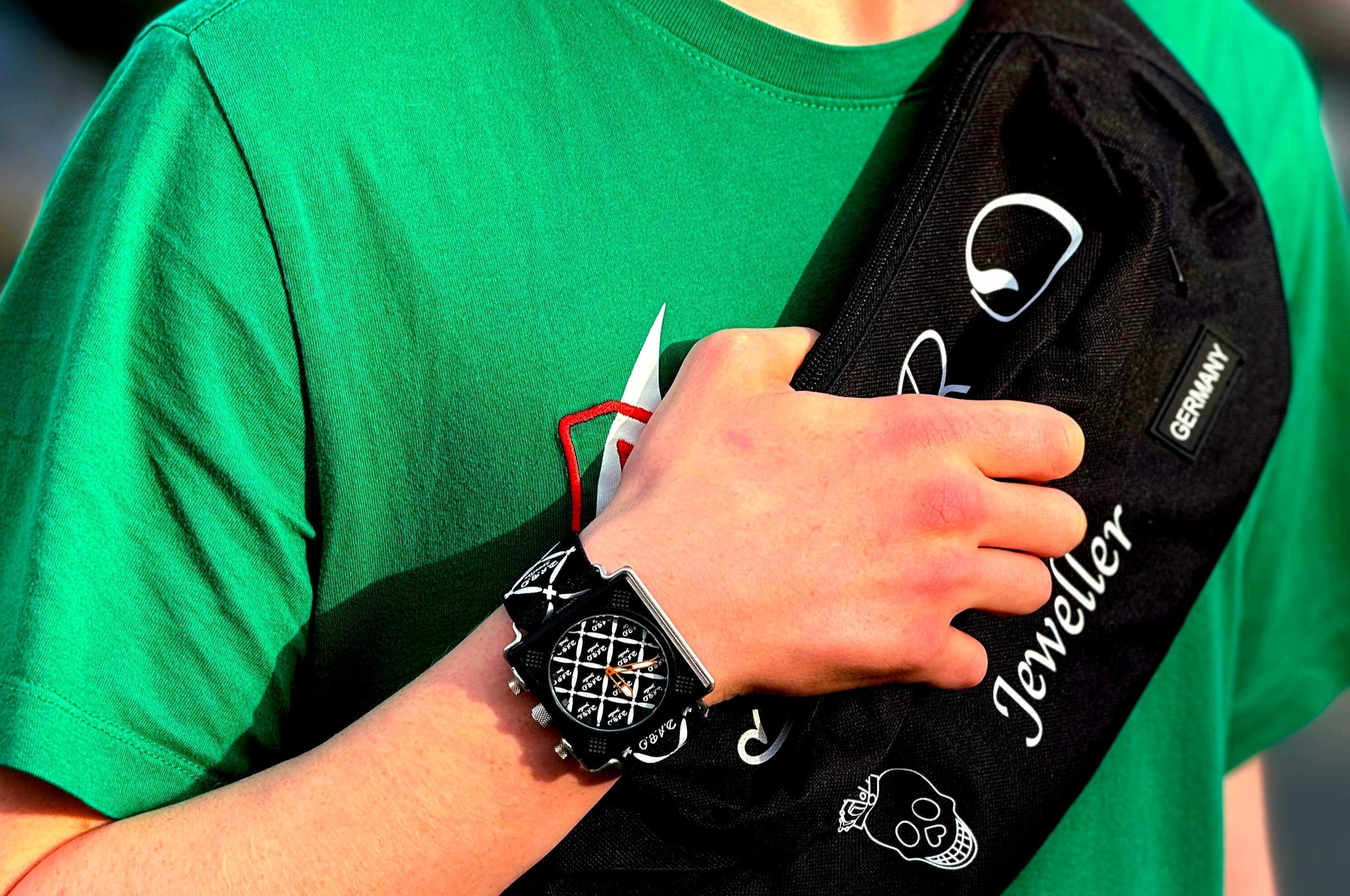 Diese außergewöhnliche Armbanduhr zu erschaffen, war das aufwendigste Projekt meines Lebens. Über drei Jahre lang habe ich auf der ganzen Welt Inspirationen und Materialien zusammengetragen, habe spezielle 3D-Programme ausarbeiten, Formen bauen und Prototypen in Metall gießen lassen. Unzählige Tage und Nächte habe ich durchgearbeitet, Versuche gestartet und wieder verworfen, Zeichnungen angefertigt und wieder zerknüllt – aber Aufgeben war für mich nie eine Option. Und dann war es endlich soweit: Aus einer fast 10 Meter langen Präzisionsspritzguss Maschine lief das erste Gehäuse der Q-uadrat in ihrer heutigen Form. Das anschließende Verfahren, um die Q-uadrat patentieren und zertifizieren zu lassen, war fast so aufwendig wie ihre Entwicklung. Aber auch das habe ich geschafft und meinen Traum für Dich wahr werden lassen: